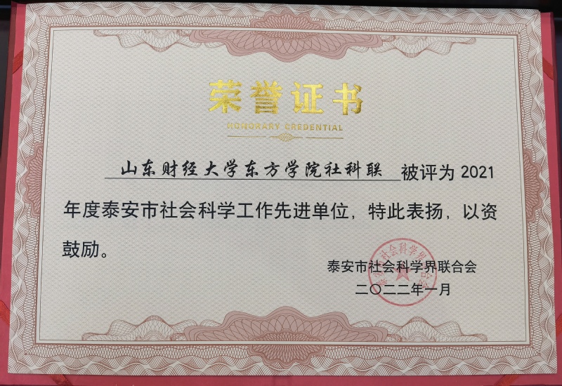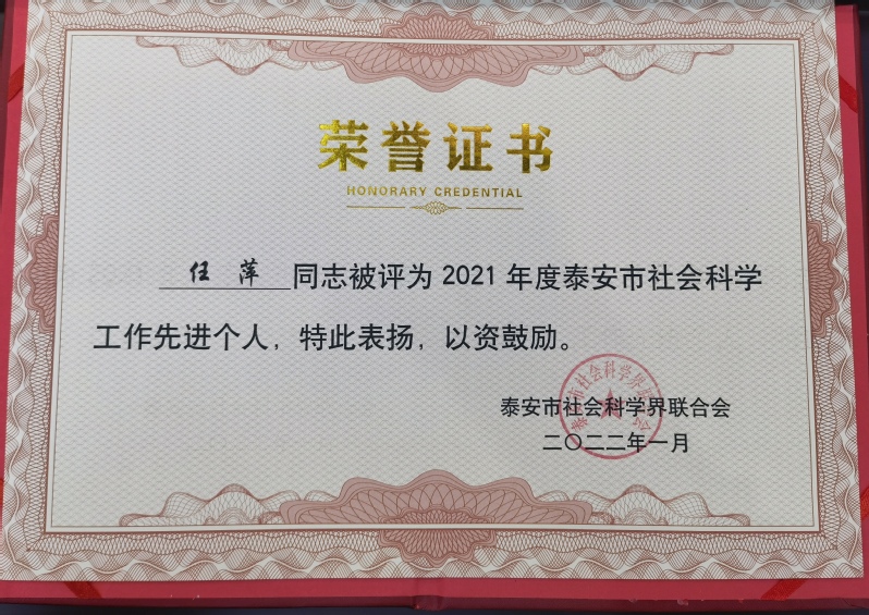 3月4日,泰安市社科联召开全市社科联工作会议,会上表彰了2021年度泰安市社科工作先进单位和先进个人。beat365在线登录社科联被评为2021年度泰安市社科工作先进单位,科研与成果转化科科长任萍被评为2021年度泰安市社科工作先进个人。